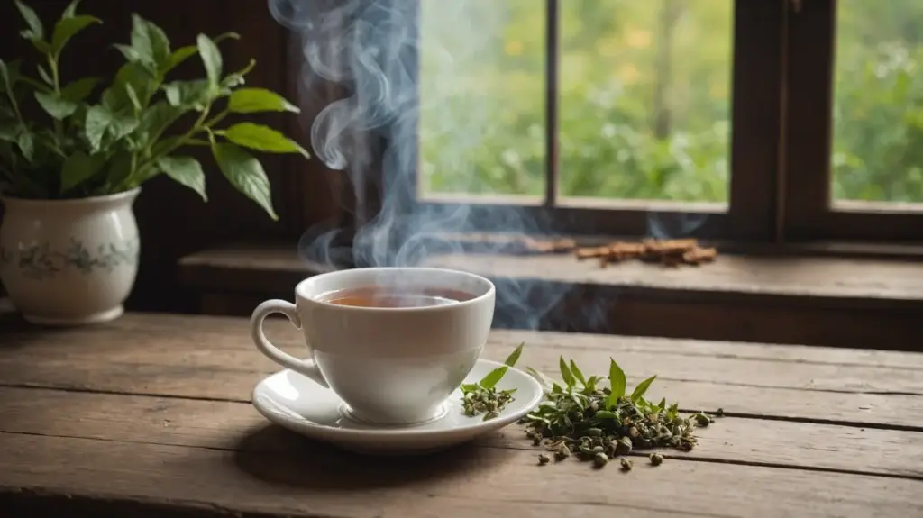 بھاپ اٹھاتی چائے کے کپ کے ساتھ،